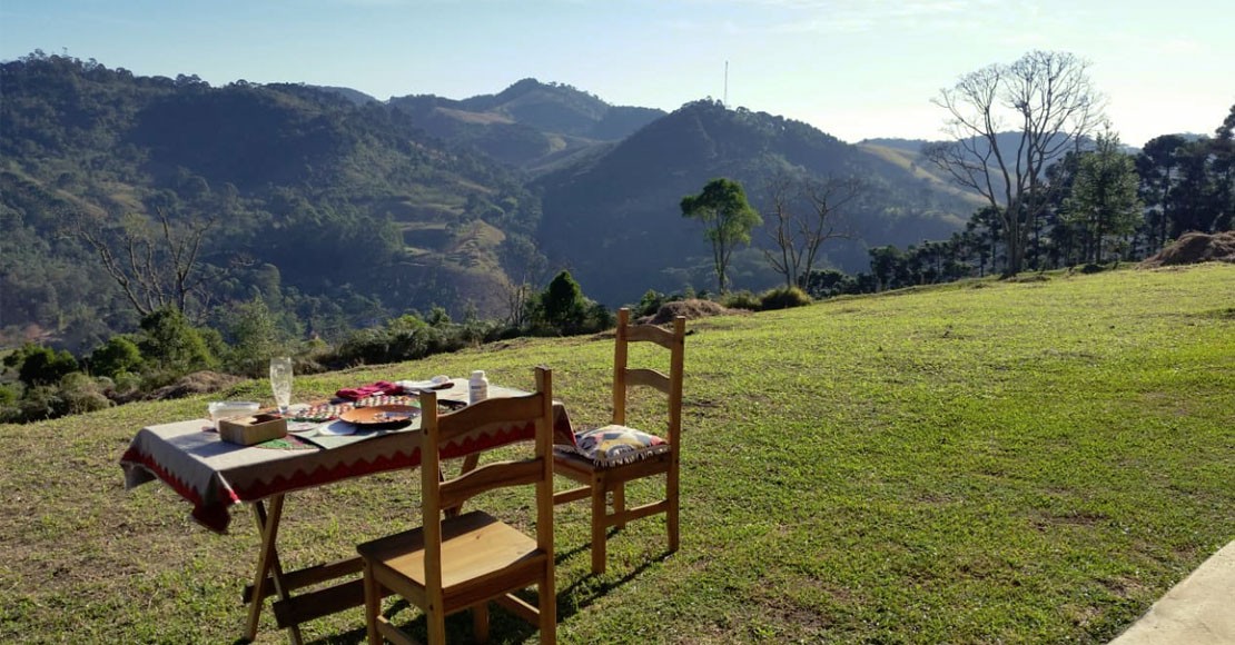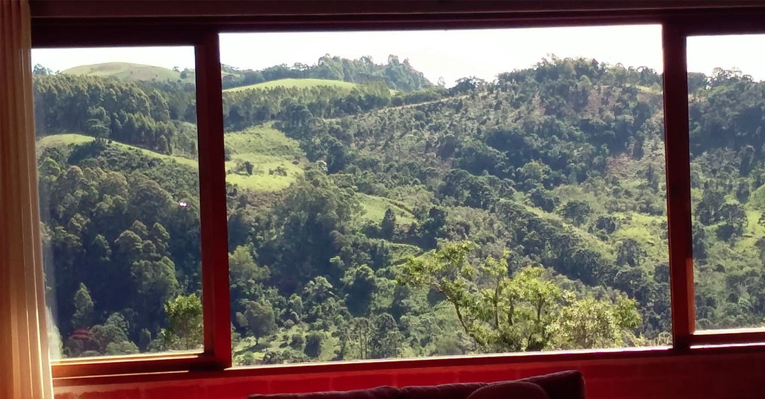 – Amplas janelas com vista para a cachoeira do Retiro ( ou Sete Quedas ) e para a bela paisagem montanhosa.